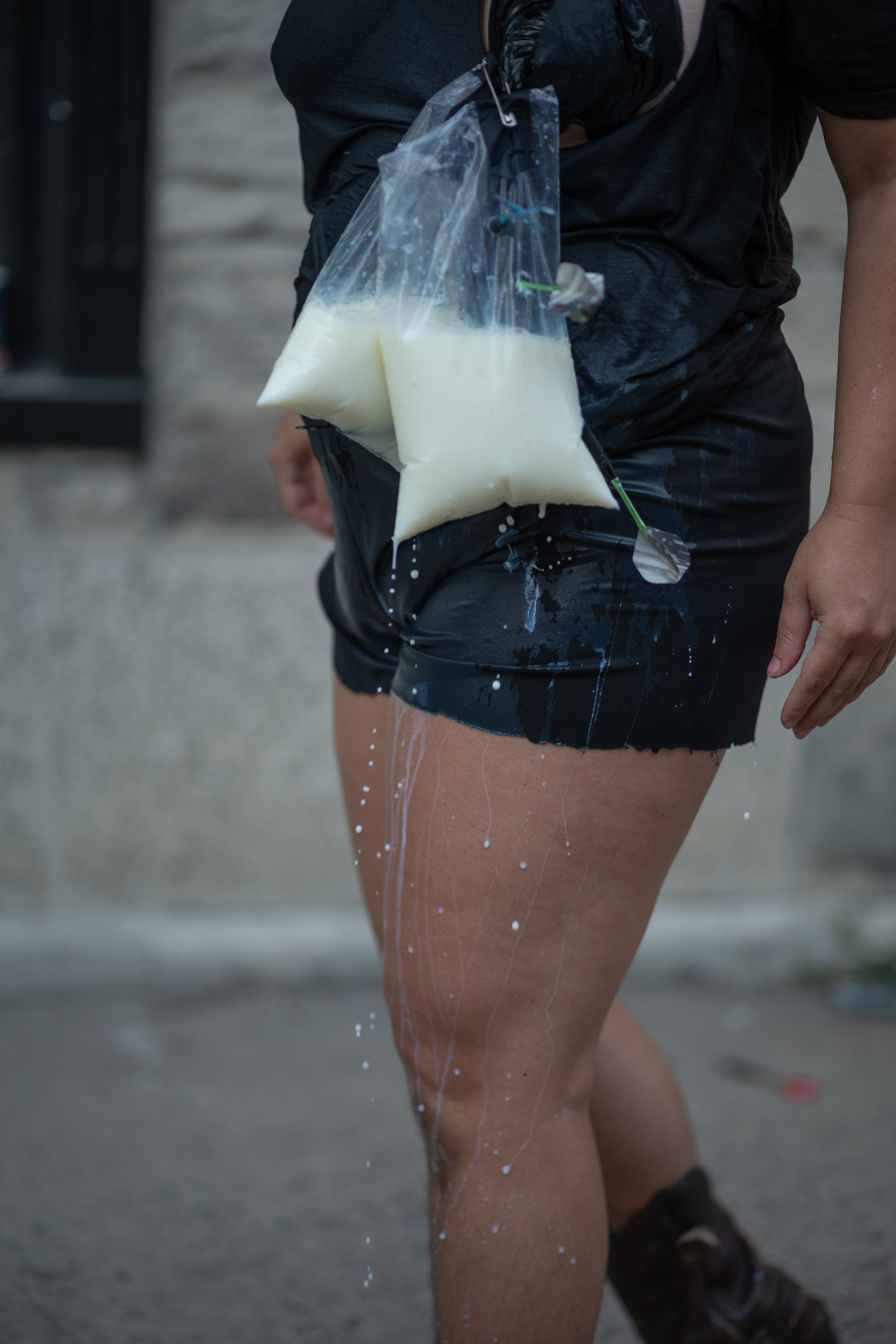 Le lait surit, performé à LEGS Qc le 9 août 2025, inspiré par le poème L'Amèr de Nicole Brossard. Crédit photo : Christian Baron.