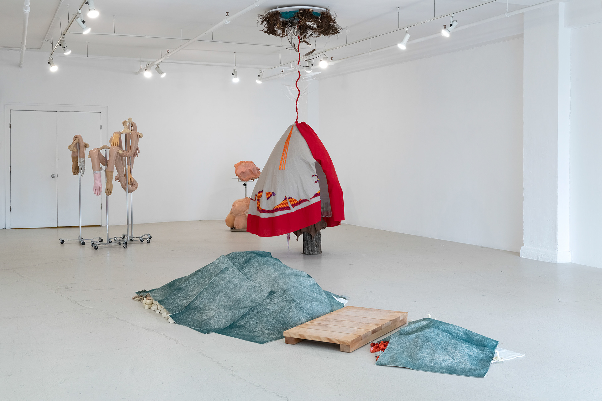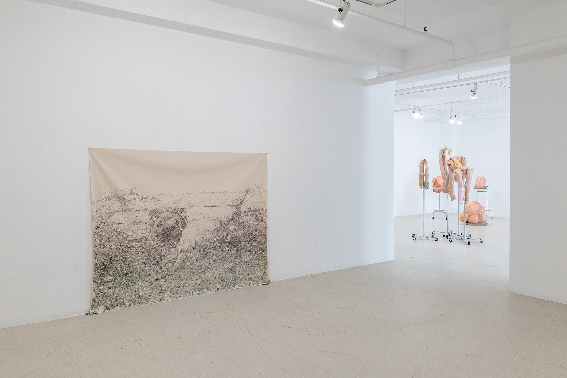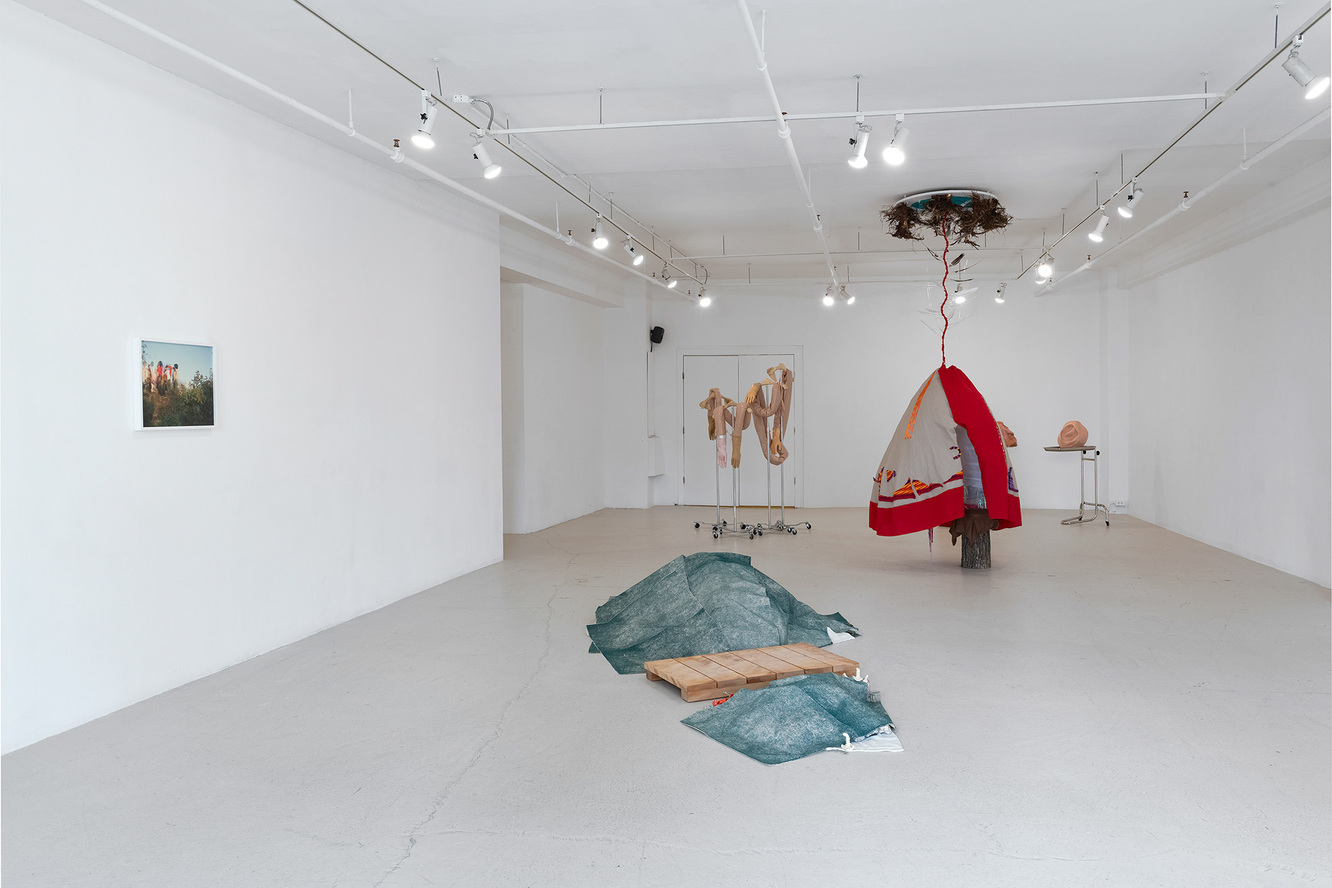 Vue d'exposition, L'équilibre des vrilles, commissariée par Julia Caron-Guillemette, Galerie B312, du 5 mars au 11 avril 2026, Biennale Post_Invisible, crédit photo Éliane Excoffier.